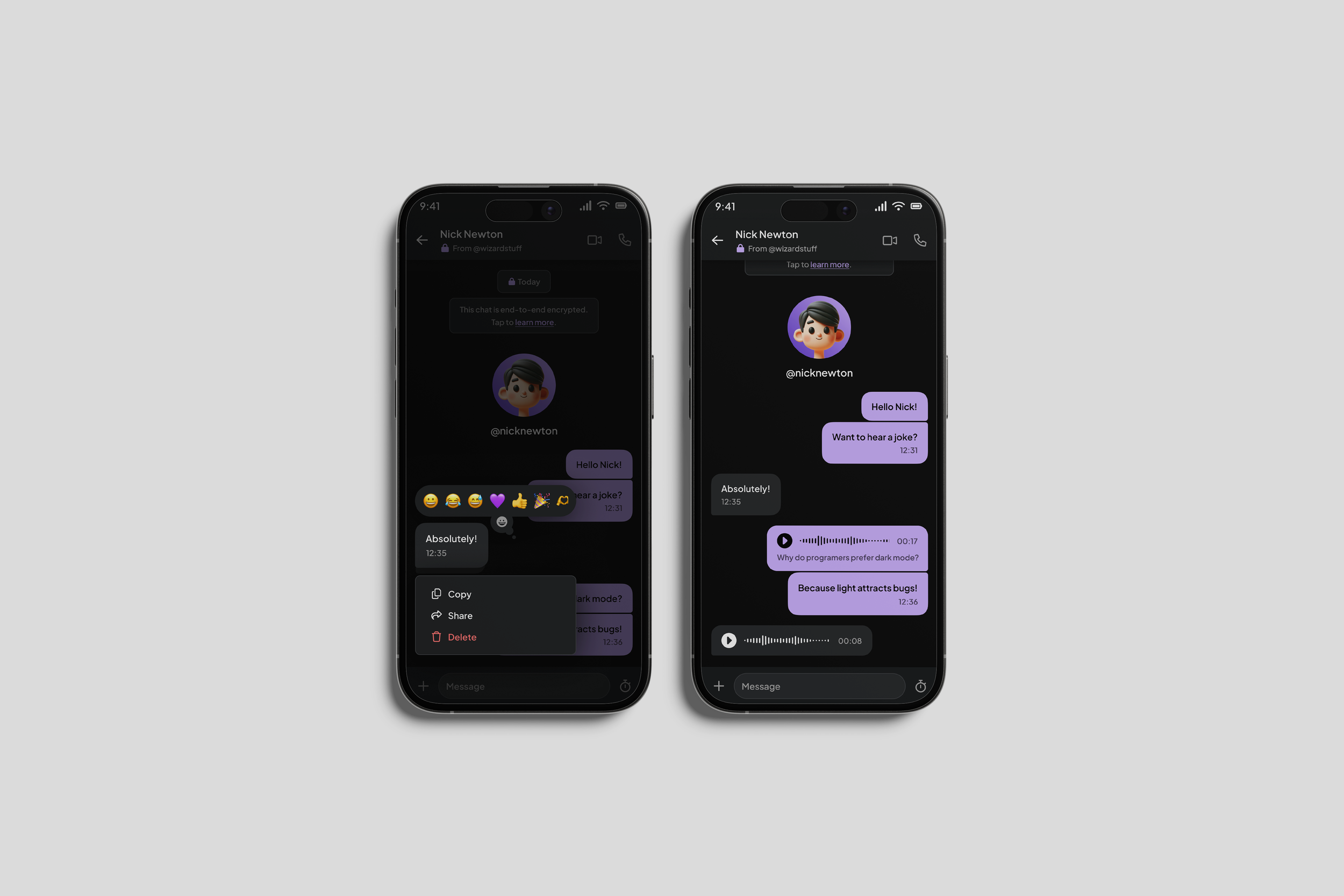 I designed quick prototype screens for the company’s 2026 vision, exploring new interactive features like emoji reactions and audio messages.